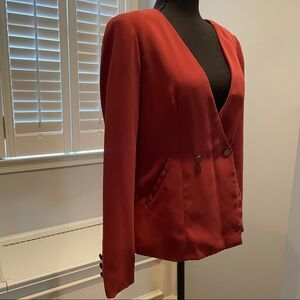 Chic blazer with a sleek design. Features a deep V-neck and button details. Perfect for both business and casual occasions.