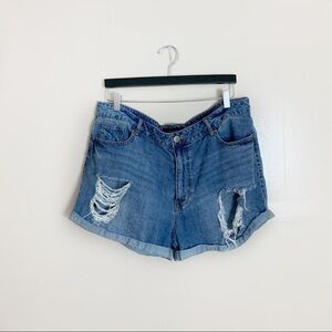 [Forever 21] Denim Distressed Plus Size Cuffed Jean Shorts