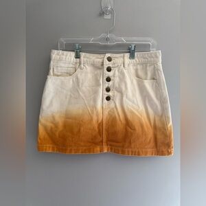 Forever 21 Denim Mini Skirt Women’s SZ L Orange Tie Dye Button Front Pockets Y2K