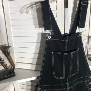 These Forever 21 denim overalls are a utilitarian staple with white contrast stitching. Designed with adjustable straps, multiple pockets, and metal side button closures. Brand: Forever 21 Size: Small Color: Black with White Stitching Material: Denim (exact blend not listed) Condition: Excellent Condition (one side button differs slightly) Measurements (Laid Flat): Waist: 17" Hip: 21" Inseam: 28" Rise: 14" Shoulder to Crotch: 34" Shoulder to Hem: 59" Key Features: Adjustable buckle straps Front chest utility pocket Dual side and back pockets Contrast topstitching throughout Side button closure #Forever21 #DenimOveralls #StreetwearStyle #AdjustableStraps #Workwear #Contemporary