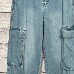 Forever 21 Denim Wide Leg Cargo Light Wash High Rise Pocket Jeans Size 29 New