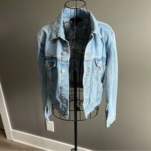 This Forever 21 jean jacket in a striking blue hue is a versatile addition to your wardrobe