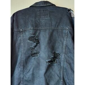 Forever 21 Distressed Black Denim Oversized Men Jacket Hip Hop Y2K Small A0040