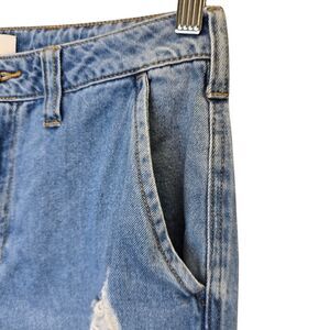 Forever 21 Distressed Cargo Jeans Women’s 27 Medium Wash High Rise Jogger Pants. Cargo jeans feature a relaxed jogger fit with elastic cuffs, ripped distressed details, and utility-style cargo pockets. Perfect for an edgy streetwear look or casual everyday wear. Button & zip fly closure. 100% cotton.
