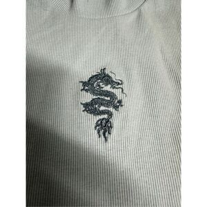 Forever 21 Dragon Crop Top Mock Neck Embroidered Gray Sz S-M Cotton Blend *Notes