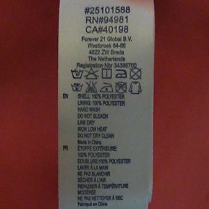 Beautiful, lined, bright coral/tangerine dress, fits nicely and looks very pretty. Dress and liner are both 100% Polyester hand wash, do not bleach, line dry, iron low heat and do not dry clean.