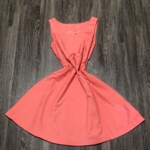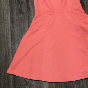 Used but in great condition! Unfortunately this is missing the size tag so please refer to measurements for size. In my opinion it looks like a S/M. Gorgeous dress perfect for any occasion! In my opinion the color is closer to a pinky/peach color. Sleeveless with a high neckline perfect tp be paired with an outfit. Has one tiny dot on the skirt but im pretty sure it will wipe off just wanted to include just incase. Feel free to send offers and questions