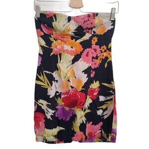 Forever 21 Dress Juniors Small Black Floral Print Mini Strapless Cotton Blend