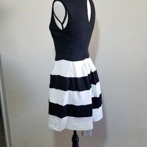 Forever 21 Dress Medium Black White Sleeveless Fit & Flare Cotton Pleated Junior