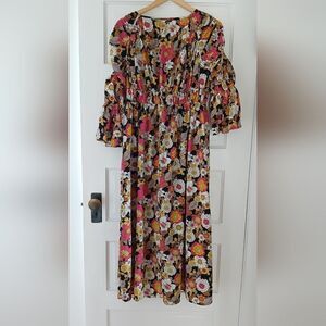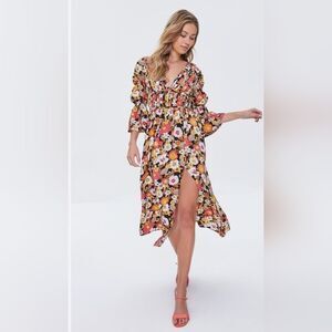 Forever 21 Dress Mid-Maxi Woven Allover Floral Bell Sleeves V-Neckline