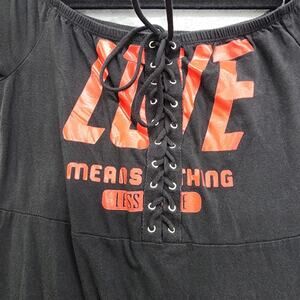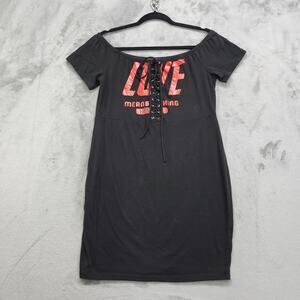 Forever 21 Dress Plus Size 0X Black Red Love Corset Lace Up Tie Front Bodycon