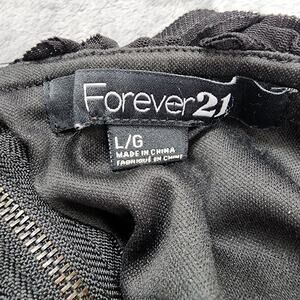Forever 21 Dress Womens L Black Strapless Floral Rosette Mini Bodycon Back Zip