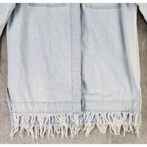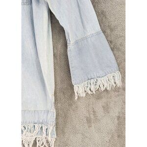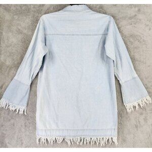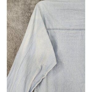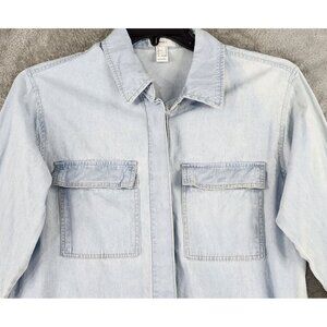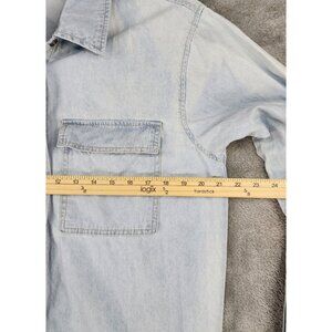 Forever 21 Dress Womens Medium Blue Light Denim Button Up Trumpet Sleeve Mini