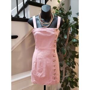 Forever 21 Dress Women's Medium Pink Denim Summer Wide Strap Button Front