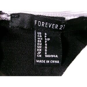 Pre-owned in excellent condition with no visible flaws. Black fit-and-flare dress with contrasting white Peter Pan collar and back zipper; tag reads Forever 21 and fabric is 94% polyester, 6% spandex. See photos for close-up of collar, label, and condition; infer to photos for accurate sizes.