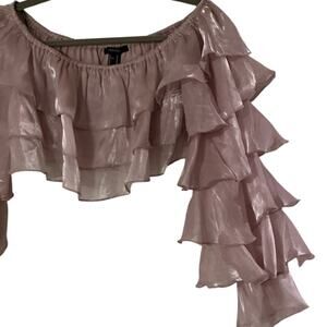 Forever 21 Dusty Rose Chiffon Ruffle Off Shoulder Crop Top Blouse Medium