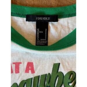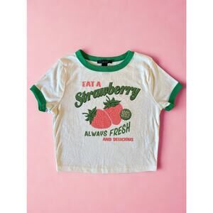 Forever 21 “Eat a Strawberry” Baby Tee | Women’s Small Green Ringer Crop Top