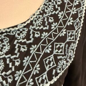 Forever 21 black top with intricate blue embroidery. Perfect for a stylish and comfortable look. Johnny Was vibe, good condition, size Small.