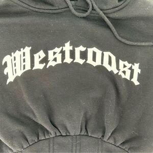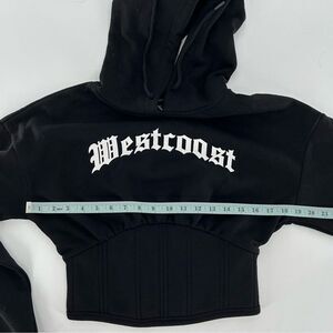Forever 21 Embroidered "Westcoast" Corset Bottom Hoodie NWT Black Small