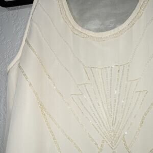 Forever 21 Exclusive Ivory Beaded Shift Tank Dress Size Small