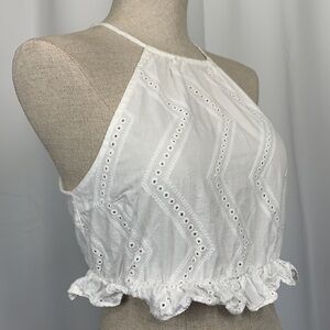 Forever 21, Eyelet Cotton Embroidered Ruffle Crop Halter Top-White, Sz S