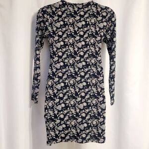 Forever 21 F21 Long Sleeve Bodycon Dress Lace Up Front Navy Paisley XL New OOS