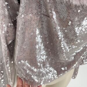 Forever 21 Faux Fur Trim Off Shoulder Sequin Crop Top Sz 3X Lavender Stretch