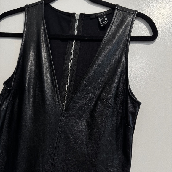 Forever 21 Faux Leather Cropped Jumpsuit – Black – Size Small
