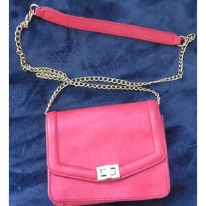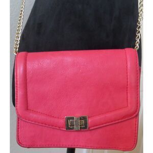 Forever 21 Faux Leather Crossbody Bag with Gold Chain Red EUC