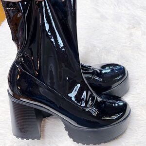Forever 21 Faux Patent Leather Lug-Sole Booties Black Size 10