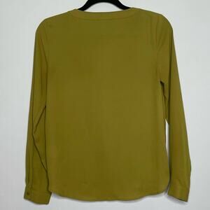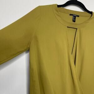Forever 21 Faux Wrap Blouse Key Hole Long Sleeve Button Cuff Mustard Green Small