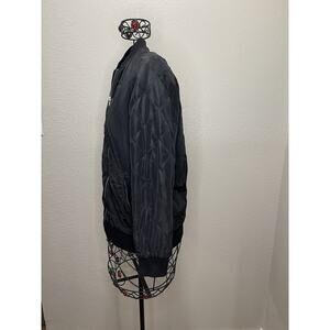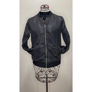 This Forever 21 female jacket in good condition is perfect for any occasion, whether it's a party or a casual day out. The mid-length windbreaker style jacket is made with lightweight polyester material and features a solid black color, long sleeves, and a zip closure. The jacket also has pockets for added convenience. The jacket is a size small and has a regular fit. It is suitable for winter and fall seasons. The lining material is made of polyester and the insulation material is also polyester. The jacket is not vintage and was manufactured in China.
