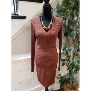 Forever 21 Fit & Flare Dress Women's Size OX Brown Rayon Ribbed Knit Long Sleeve