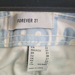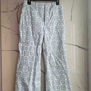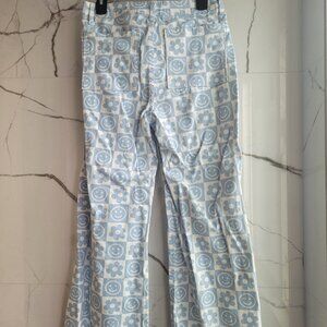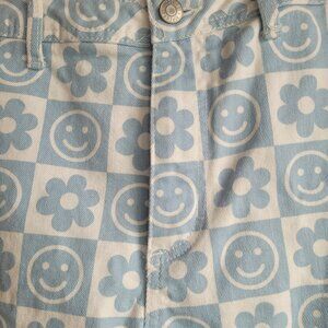 Forever 21 Flare Bell Bottom Jeans Checkered Floral Happy Face Pattern