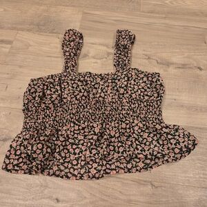 ✨️ Forever 21 Floral Black and Pink Crop Top Size Small