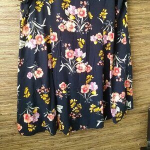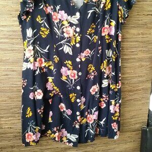 Forever 21+, floral mini dress, navy blue dress, button front, size 2X, curvy style, multicolor flowers, plus size fashion, trendy mini dress, 35 inch length, summer dress, boho chic, pre-owned Forever 21, casual dress for women, plus size
