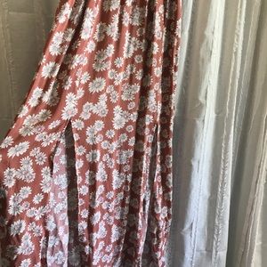 Forever 21 halter floral dress. Length is long with slits along the leg. Can fit small or medium. Great with a denim jacket!