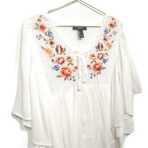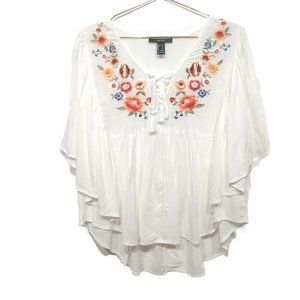 Forever 21 Floral Embroidered Peasant Top - Size Small