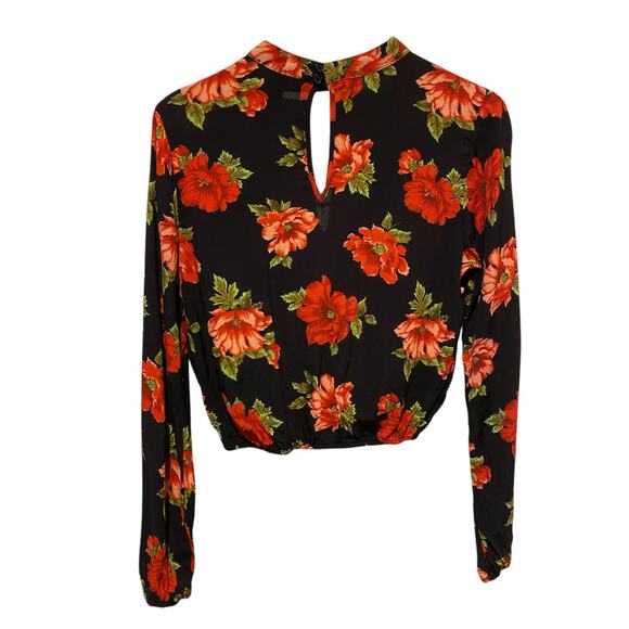 Forever 21 Floral Print Cropped Blouse Small Black Poinsettia Night Out Party