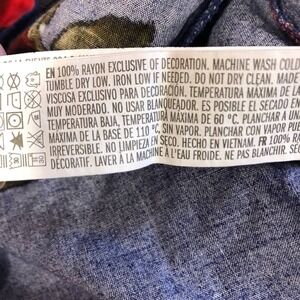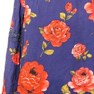 Forever 21 Floral Print Long Sleeve Shift Dress Blue Red with Lace Size Small