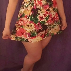 Dress has tie top and cutout, floral pattern all over. Good condition, worn only a few times.
