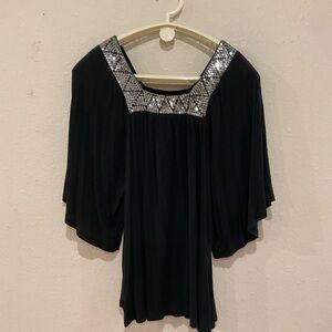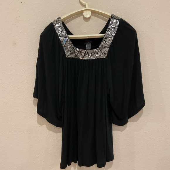 Forever 21 Flowy Blouse Square Sequin Neckline Flutter Sleeves Black Women’s Med