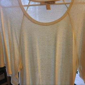 ✨ONLY WORN A FEW TIMES✨ A cream colored top that's loose and flowy. Hand wash or delicate wash cycle (don't throw in the dryer after) recommended to preserve its size and shape. I use this rule with a lot of my "going out" clothes 😊 82% rayon, 13% linen, 2% spandex.