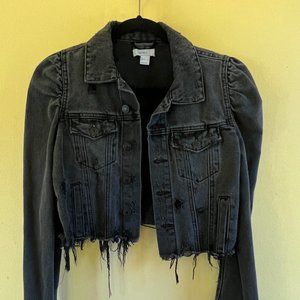 Forever 21 Frayed Puff-Sleeve Denim Jacket Size Small Color Washed Black