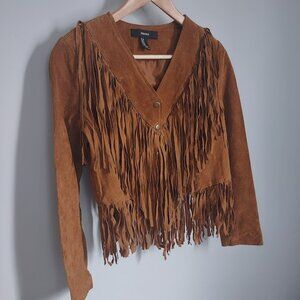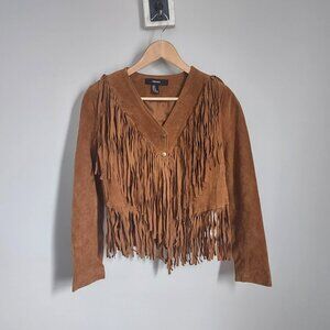 Forever 21 Fringe Tan Suede Leather Jacket NWT Medium
