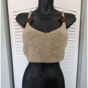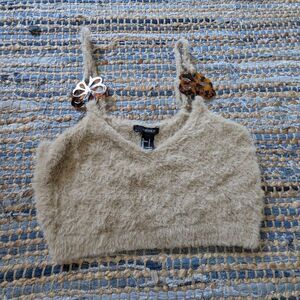 Forever 21 Fuzzy Cropped Butterfly Halter Top L Spaghetti Straps Beige Festival