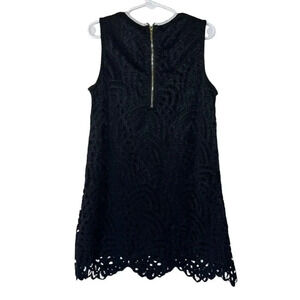 This Forever 21 dress for girls in size 7/8 features a beautiful black lace fabric with a round neckline and sleeveless design. The dress has a unique eyelet cutout feature and comes with a bow accent, adding a touch of elegance to the overall look. It has a zip closure and is perfect for any occasion, whether it's a party, casual outing, or formal event. The dress is made of a combination of polyester, nylon, and spandex, and should be hand washed only. This A-line dress is perfect for all seasons, including winter, summer, fall, and spring, and is manufactured in China.