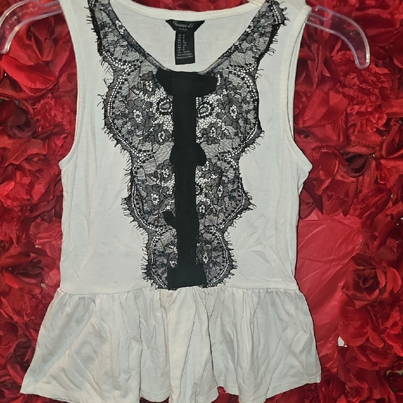 Forever 21 Girls Elegant Lace Trimmed White Tank Top Size Small