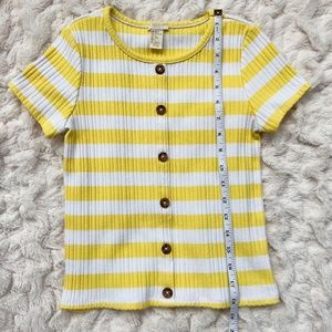 A soft shirt with decorative buttons that rests gently on hips and doesn't need to be tucked in.