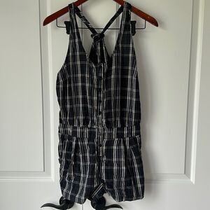Forever 21 // Give You Size M Plaid Boxer Print Front Button Racerback Romper